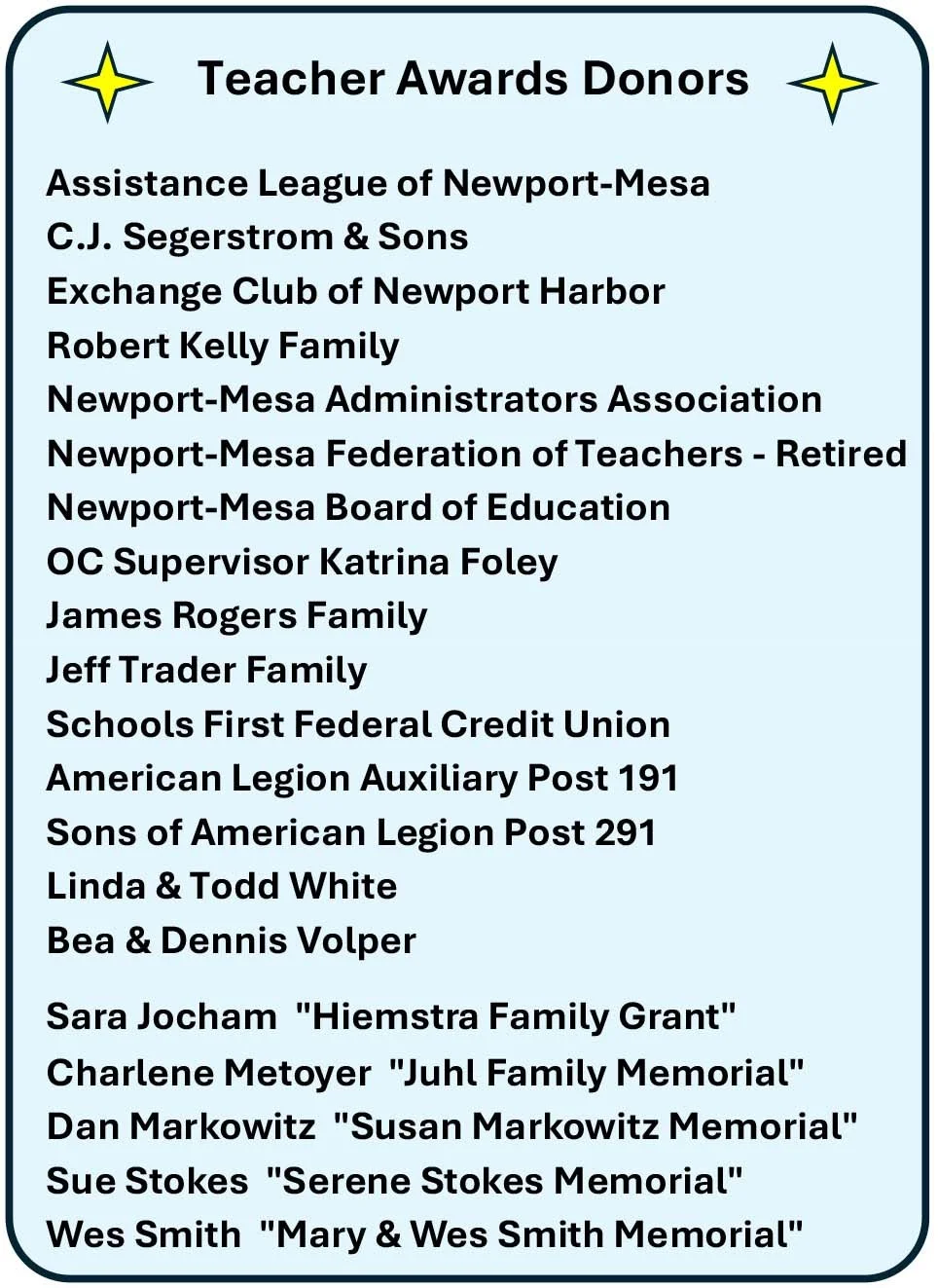 Contributions to Newport-Mesa Schools Foundation are tax deductible. ID# 95‑3545875